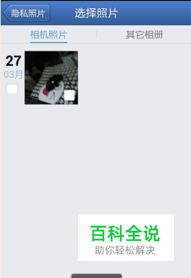 进入到腾讯手机管家的隐私空间,我们可以点击隐私空间的照片按钮,进入到隐私照片添加选择界面,我们通过添加我们需要隐藏的照片点击确定即可。