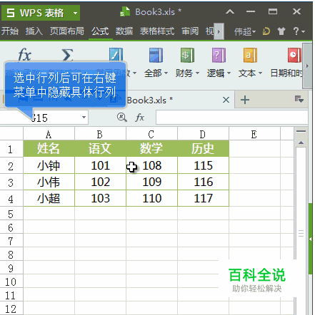 第一步,打开表格,并且右击选择隐藏就可以啦。