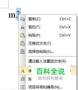 鼠标选中3,右键单击,在菜单中点击字体。