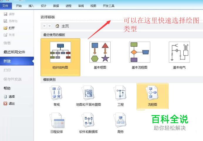 首先我们打开Visio软件,会默认进入选择模板界面,在这里我们可以快速选择要绘制的图形模板类型,如下图所示