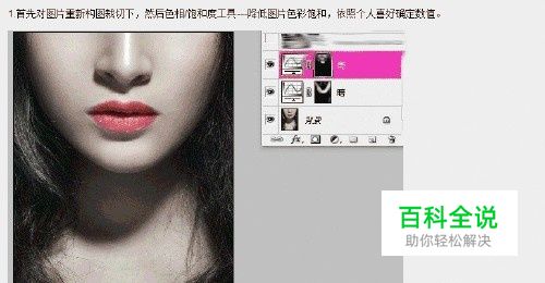 1.首先对图片重新构图裁切下,然后色相/饱和度工具---降低图片色彩饱和,依照个人喜好确定数值