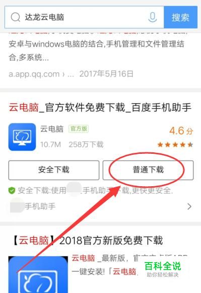 打开搜狗搜索,搜索“达龙云电脑”,将其下载到手机上面。