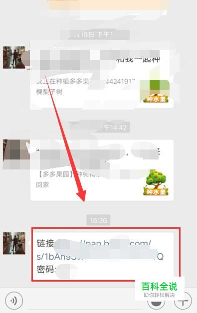 打开微信,找到微信群,在群里面找到百度云分享链接,点击链接,进入链接里面,如图所示。