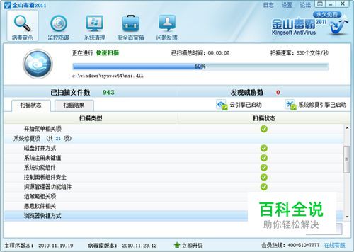 首先,应该排除病毒干扰,安装金山毒霸最新版本快速查杀,可以将正在运行的病毒木马、流氓软件一次清除。