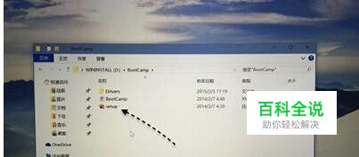 在安装好以后,请打开 U 盘启动盘,在 BootCamp 目录下,双击打开 Setup 安装程序,可以为 Windows10 安装 Mac 电脑的硬件驱动。
