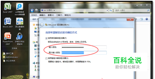 勾选“使用密码解锁驱动器”,输入密码再单击“下一步”。