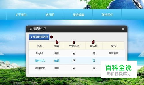 c. “开启站点”处如已经勾选,意味着这几种语言已经发布,如上图,已发布的语言有English, 简体中文和繁体中文。如需修改,直接勾选或者去除并保存即可。
