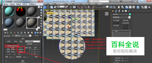 真实世界贴图是另一种贴图范例。该功能可以创建材质并在“材质编辑器”中指定 2D 纹理贴图的实际宽度和高度。将该材质指定给场景中的对象时,场景中出现具有正确缩放的纹理贴图。