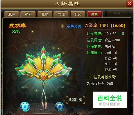 点开兵器附魔,就会弹出附魔界面。兵器附魔需要消耗无极珠, 每个无极珠随机增加某个属性的一点履历。每一点履历可以增加2点属性,品级越高,增加的属性越多。假如一个格子满了,还可以使用附魔扩展卷来解封封印。附魔的履历越多,附加的属性就越高,你的兵器就越强力。还等什么,拿起的兵器,点击附魔,拥有更高的实力。