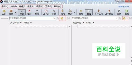步骤二 点击“文本比较”后出现如下图所示界面。我们可以看到一系列的菜单项,点击每个菜单项,就可以知道每个菜单所包含的功能,这里主要来看一下主界面的两个小文件夹的图标,这两个图标就是用来打开你想要比较的两个文本文件的。
