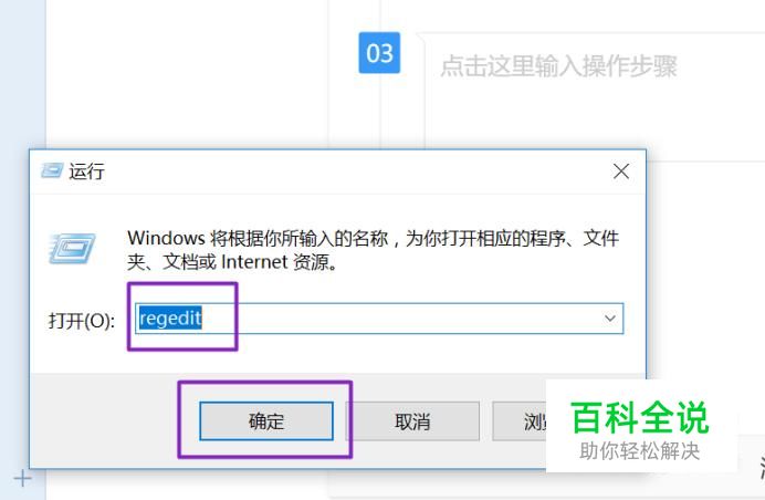 弹出的界面,我们输入regedit,然后点击确定;