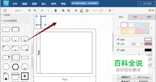当模板创建好之后,开始在模板中添加文字了,选中任意一个图形鼠标双击两下就能添加文字了,文字添加好之后,选中文字,然后然间界面右侧就会出现一个“文件”的大工具,在这工具中就能对文字设置样式了。