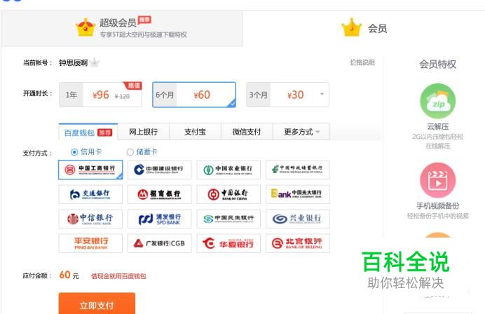 进入订单界面,选择“会员”,然后根据需求选择开通时长以及支付方式,点击“立即支付”