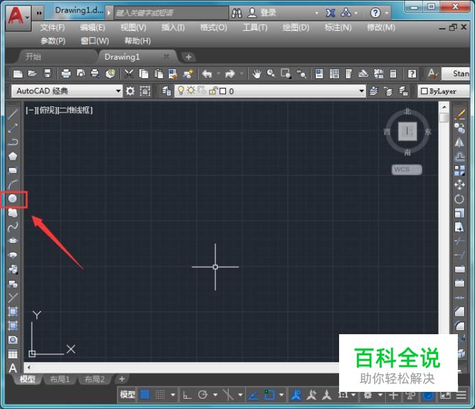 打开操作的之后在工具箱内找到圆形命令,如图所示: