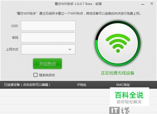 进入魔方Wifi助手后,这个小工具会首先检查你的电脑环境,例如有没有安装无线网卡之类的。一般来说,这个你不用管,只需要等待就行。
