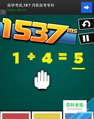 第十一关“哦,我喜欢数学!”看到这个关卡的名字小编纠结了,小编在上学的时候数学就不怎么好。所以这个关卡小编搞的很吃力啊。我们看看这关的介绍,以最快速度解决这些简单的数学问题。看到这里时小编想到简单的数学问题应该就是加减乘除之类的,其实也就是这样。我想有很多的玩家在玩这关的时候完全找不到北。因为没有明白这个关卡的规则。小编就在这里详细的说明一下。游戏开始时会有一个算数题。玩家只需要在下方的三个数字中选出正确的就好了。接下来会有一个小手将这个算数题的三个数字盖住一个,并且会出下一道题,而这道题是利用一个数字与这个小手盖住的数字进行运算得出结果的。之后就进行重复。 可能小编这样说明大家还是有些不明白,小编就给大家举个例子,运算的答案小编就用汉字来表示,被手挡住的小编就用①这样的来表示。 例:1+1=二 ①+5=六 4+⑤=九 3+六=⑨ 第十一关的评分标准是S:1000 A:1100 B:1200 C:1300 D:1400 E:1500 这里小编建议大家在玩这款游戏的时候,抱着一个娱乐的心态去玩。不然的话很可能会有砸东西的冲动!