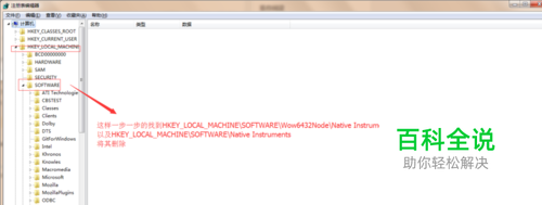 找到HKEY_LOCAL_MACHINE\SOFTWARE\Wow6432Node\Native Instruments 以及HKEY_LOCAL_MACHINE\SOFTWARE\Native Instruments将其删除
