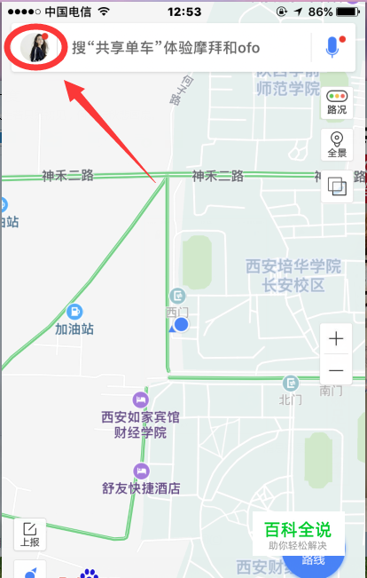 打开手机上的APP百度地图软件,先将我们得百度账号登录,然后如图点击头像。