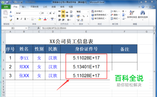 在Excel中输入身份证号等数字后变成E+处理方法