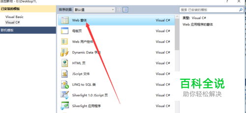 然后在弹出来的窗体,选择Web窗体,点击添加进入下一步。