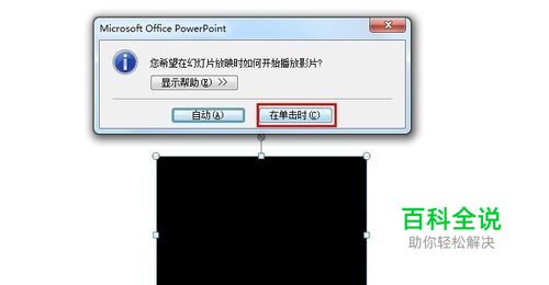 选择本地的影片文件并插入,此时就会弹出一个窗口,选择影片的播放方式。如此选择自动,则当前页面载入时就会自动播放,否则将在点击鼠标时播放。 在此选择“点击鼠标时”按钮。