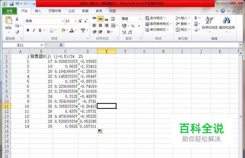 在C1输入(j-0.5)/24,根据这个公式。求出正态分位数。 然后鼠标指向单元格右下角填充控点,按住鼠标左键往下拖,正态分位数就求出来了。