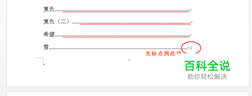 打开所需要设置的文档,将光标移动到需要设置新的起始页码的前一页末尾,比如示例中,将光标移动到目录页的最后一行。
