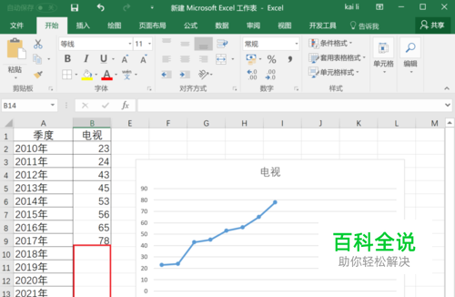 首先选中数据范围,添加折线图表,如下图所示。