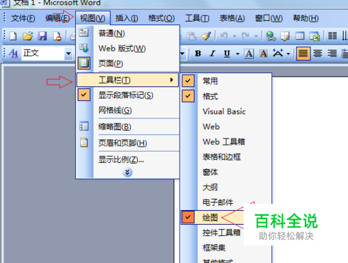 点击“视图”“工具栏”勾选“绘图”,打开绘图工具栏