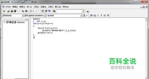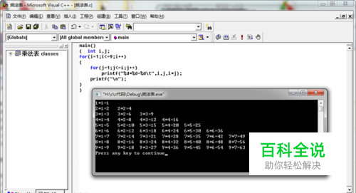 main(){ int i,j;for(i=1;i<=9;i++){ for(j=1;j<=i;j++) printf("%d*%d=%d\t",i,j,i*j); printf("\n");}}
