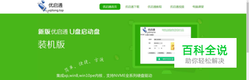 通过百度、搜狗等搜索优启通,也可直接访问http://www.uqitong.top/进入官网,进入官网下载安装。优启通分为装机版和UEFI版。装机版制作工具体积小,占用U盘的空间小,功能强大稳定,支持大多数主板;UEFI版支持引导启动苹果mac电脑,支持多数UEFI新型主板直接U盘启动,适合较新的主板。