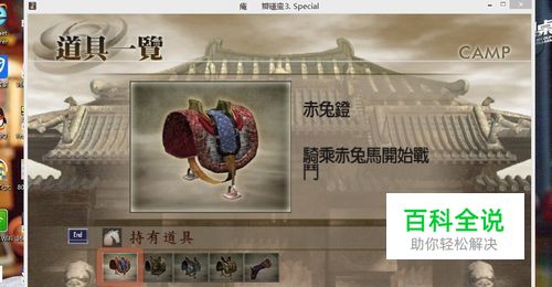击破刘备之后会显示出现贵重品,地图上会发光,直接到地图显示出取贵重品就能得到赤兔了。