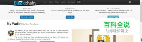 现在我们只要点击 “开始一个新的钱包”或者“ 创建我的免费钱包”来创建我们的比特币钱包了。