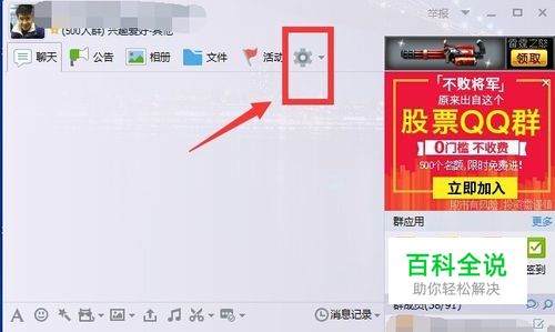 首先我们要打开想要设置的qq群,在群的窗口右上角点击设置按钮,如图所示。