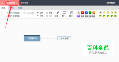 直接导出法——步骤1 打开百度脑图,新建思维导图后,找到左上角百度脑图按键——点击。