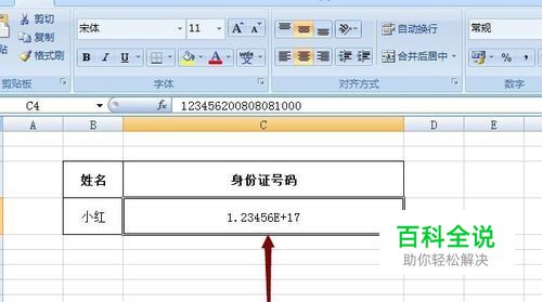 打开excel表格,输入一个身份证号码,你会看到变成一个乱码