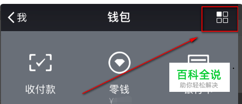 2.进入【钱包】主页面之后,点击右上角那个【四个正方形符号】的菜单按钮,如下图所示。