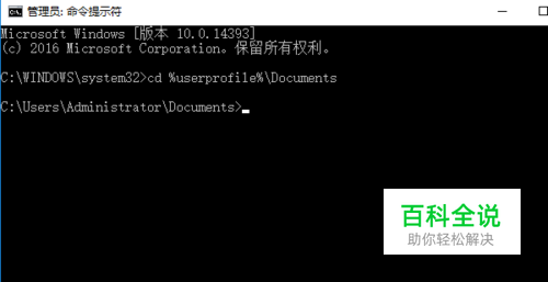 这样打开了命令提示符窗口,输入命令:cd %userprofile%\Documents 并回车。