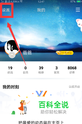 再点击空间左上方的设置这一项。