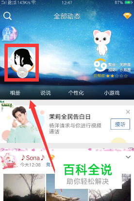 首先在手机QQ空间的页面,点击自己的头像。