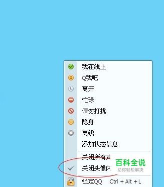 将鼠标光标放QQ企鹅上,右击鼠标,将关闭头像闪动前面的勾去掉就可以了。