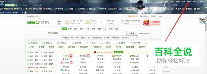 打开360安全浏览器,进入其主界面。点击帮助。
