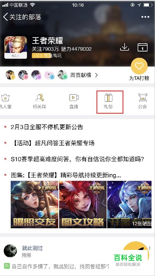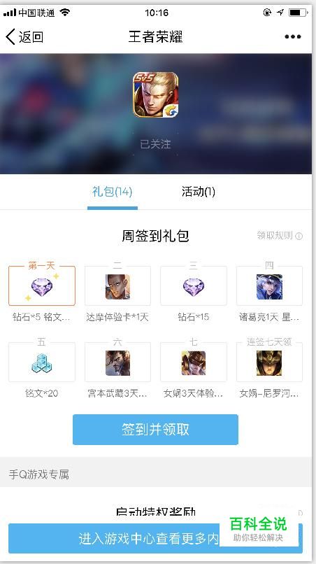我们通过手机QQ,在手机QQ上关注王者荣耀部落。进入部落就可以领取相关奖励,其中包括钻石,铭文等,点击图中框起来的按钮。