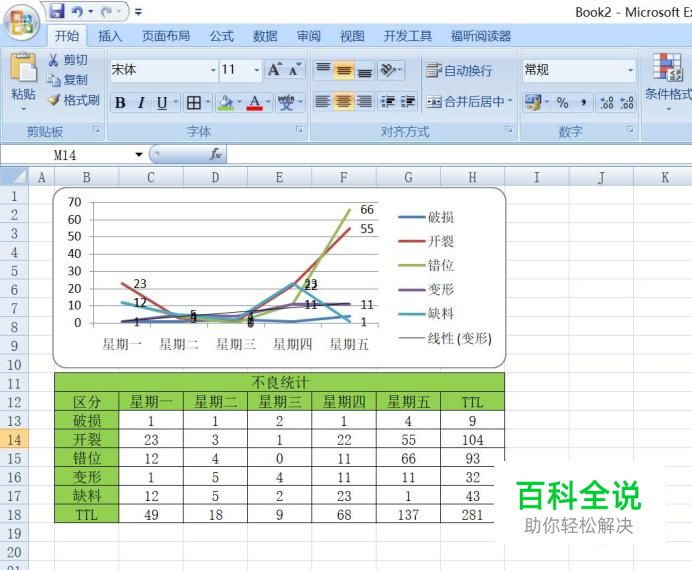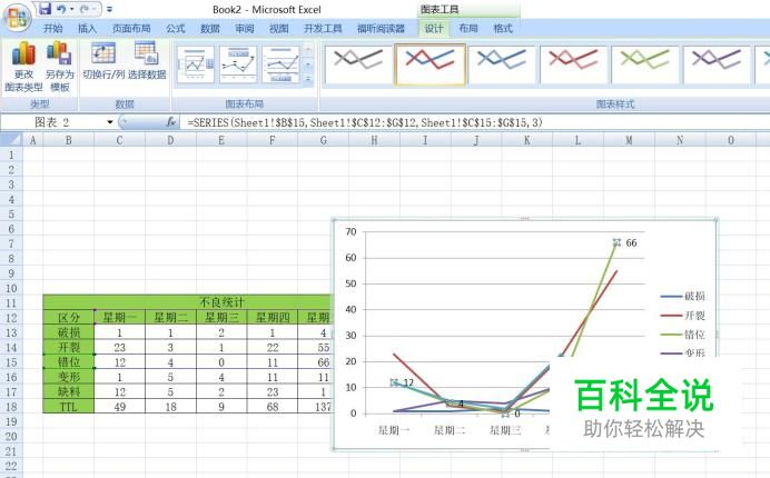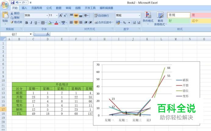 这样,插入的图表针对于每天的每种不良类型的一个二维折线图便做好了。
