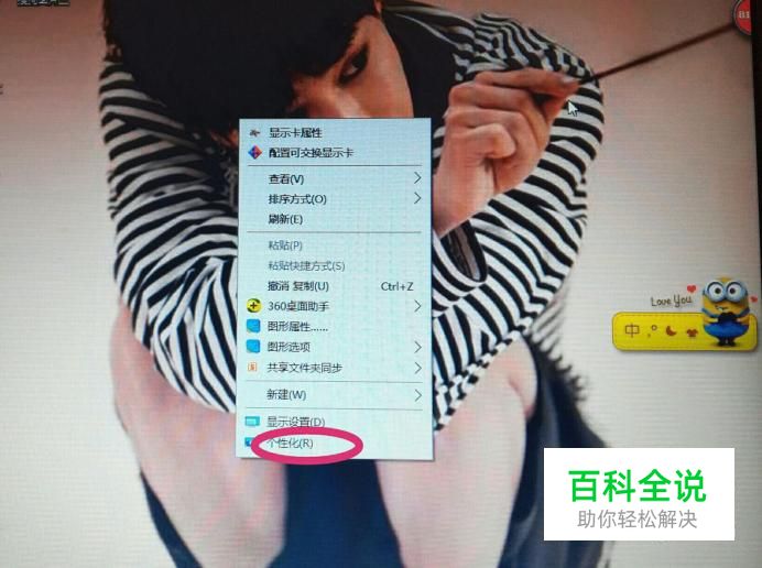 首先在桌面上单击鼠标右键弹出菜单栏,选择最下面的“个性化”。
