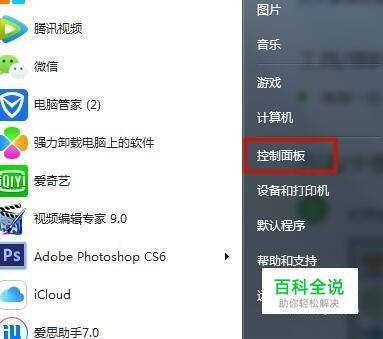首先点击开始-找到控制面板并点击它,如下图所示。