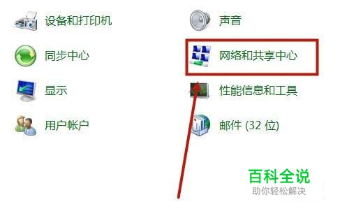 然后点击网络和共享中心,如下图所示。
