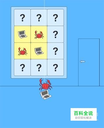 27关。 这关主要记住图中出现的东西,当二个游戏机的图出来后,真正的游戏机就会显示了,但有一条线绑着。再点击图中的拼图,点到二个螃蟹的时候,地上会跑出一个螃蟹来,捉住它后,用其把游戏机的线剪断,就可以拿到了。