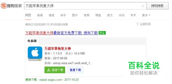 网上搜索软件【万能苹果恢复大师】下载安装到电脑上。