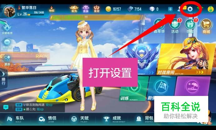 打开QQ飞车手游,在我们的游戏主界面找到设置选项。